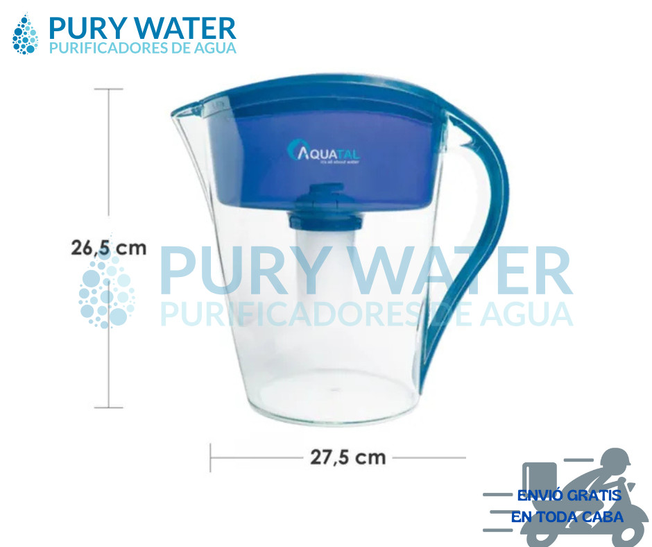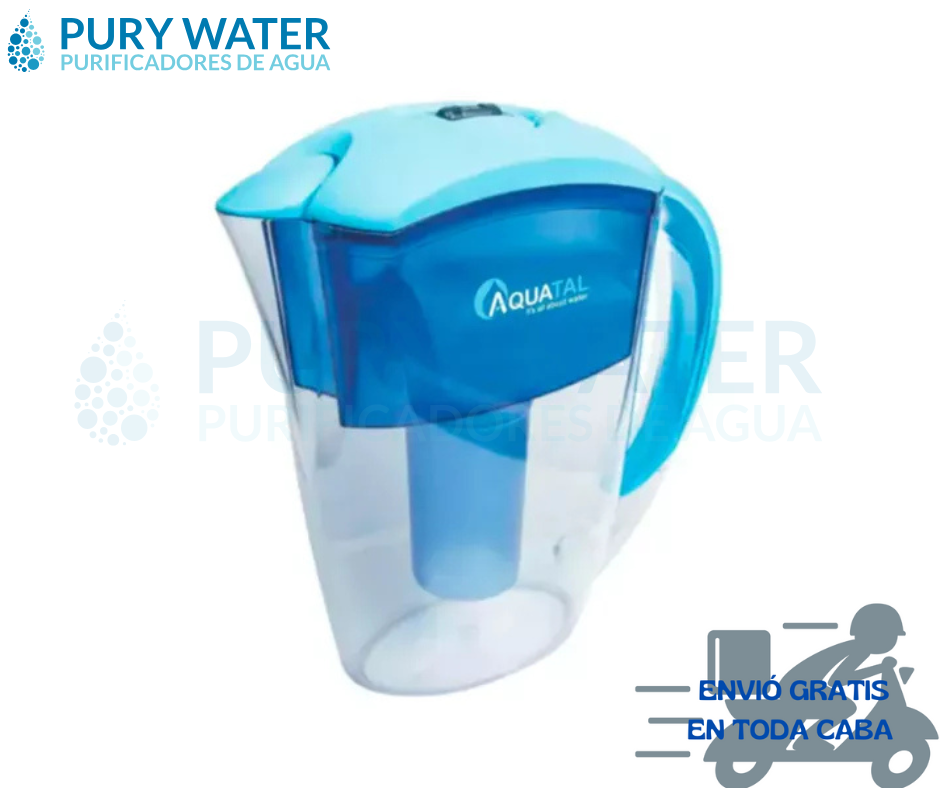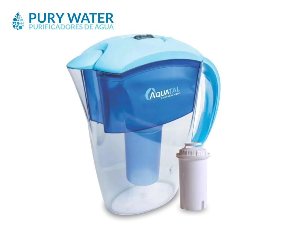 Estos dispositivos de acondicionamiento de agua de red domiciliaria son la opción más simple, práctica y económica de tener agua libre de impurezas en tu hogar, sin necesidad de instalaciones. Cuenta con una capacidad de 2,4 litros e incluye un filtro que contiene Carbón Activado y Resina de Intercambio de Iones. Fechador en la tapa para saber cuando cambiar el filtro.