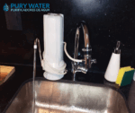 -Llave de transferencia de bronce cromado con aireador para poder alternar entre el grifo y agua filtrada.